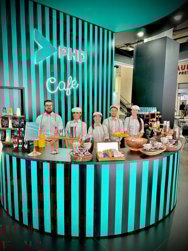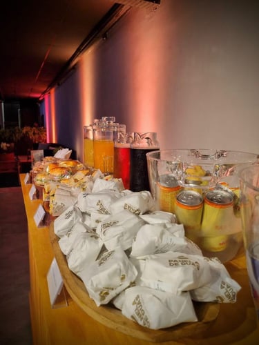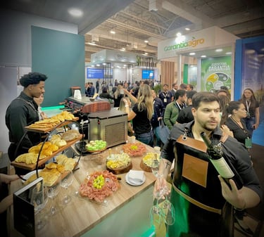 Temos uma equipe especializada que cuida de toda operação de alimentos e bebidas do seu stand, com uma vasta variedade de opções de Menu e tipos de bebidas alcoólicas e não alcoólicas.
