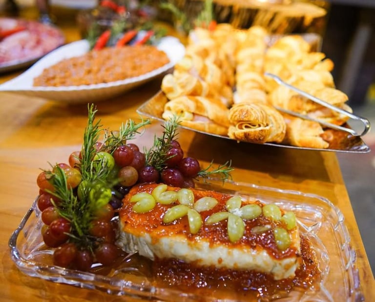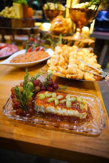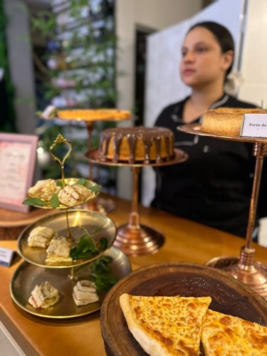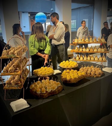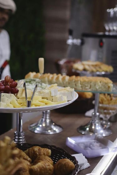 Gastronomia para eventos corporativos e sociais, com opções de cafeteria profissional e mesas temáticas.