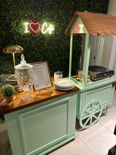 Temos diversas opções de carrinhos, bike e mobiliários que podem ser personalizado com logo da sua empresa, servindo desde milk shakes divertidos e cafés especiais, até doces, gastronomia criativa ou ações com produtos específicos como pipoca gourmet.