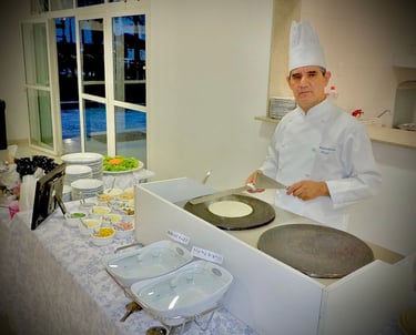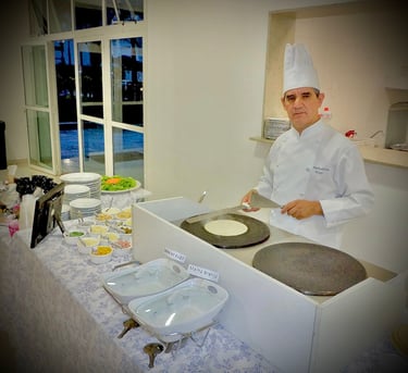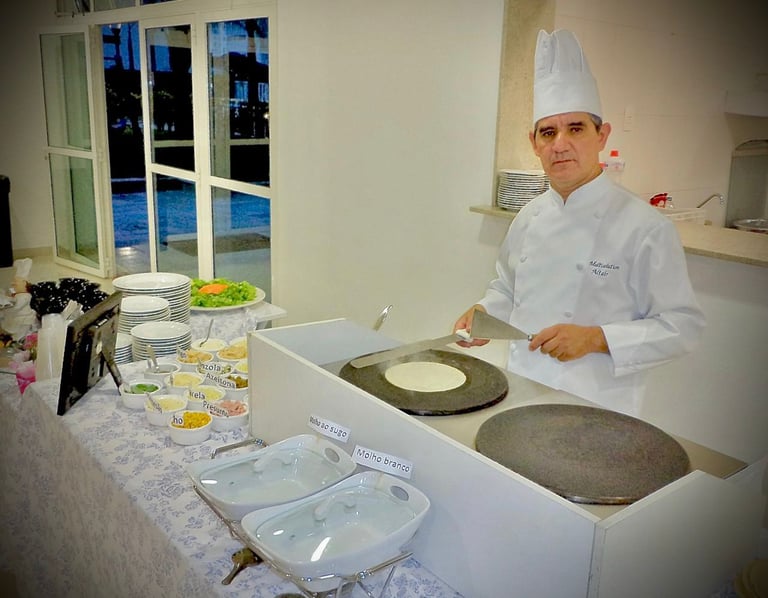 Para eternizar momentos, com a combinação de uma gastronomia rápida e eficiente, uma ótima pedida é o buffet de crepe francês, com opções doces e salgadas.